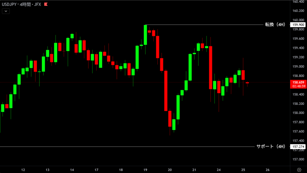 | 159.901 | 目線変更 | 4時間足トレンド転換 |