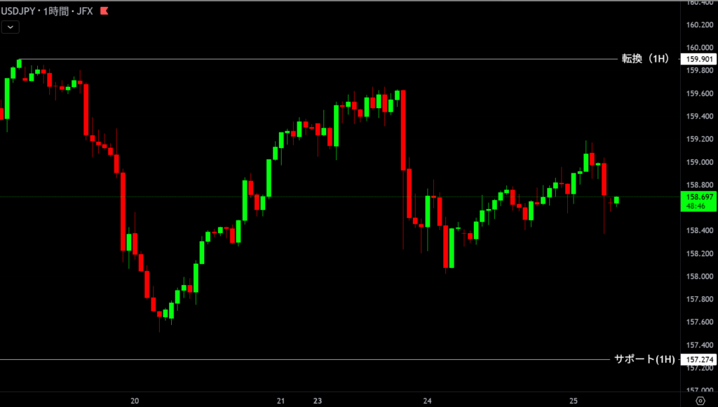| 159.901 | 目線変更 | 1時間足トレンド転換 |