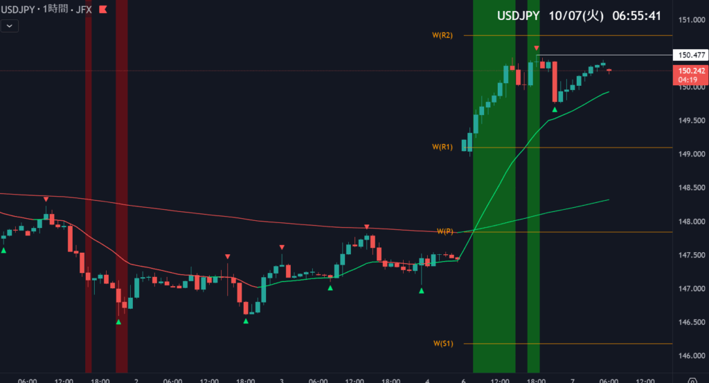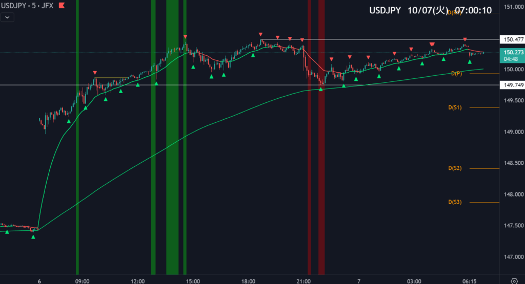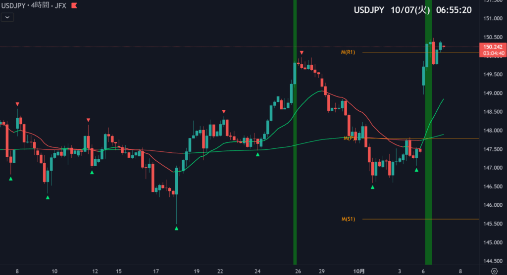 本日の狙い目のレートはまずは高値更新して150.50を抜けてくるのか