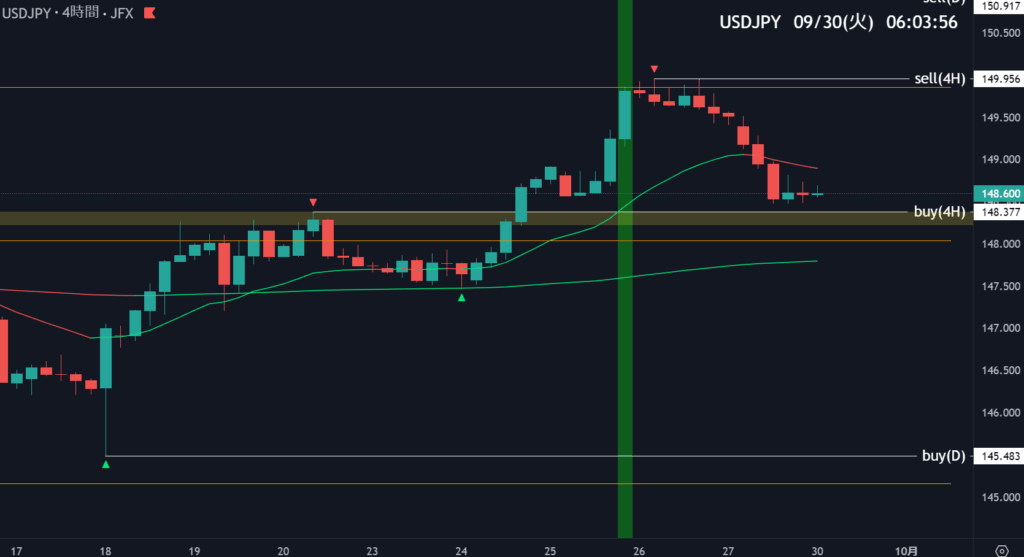 レートなら148.40付近ですね。ここを割らない限りはロング目線で。