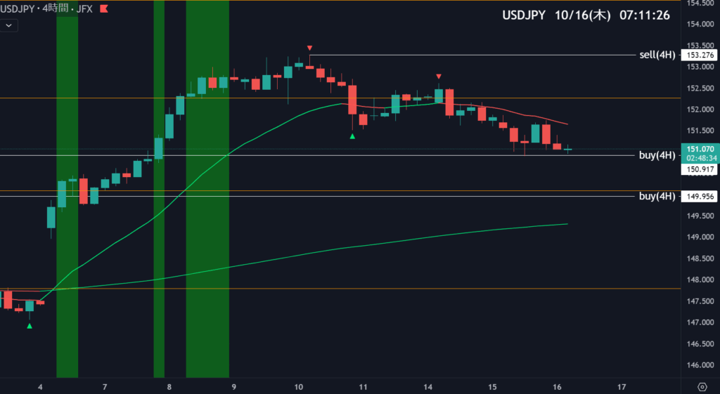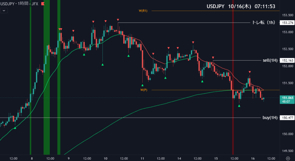 | 150.90より上 | ロング狙い | 1時間足支持帯 | 多少の抜けには注意 |