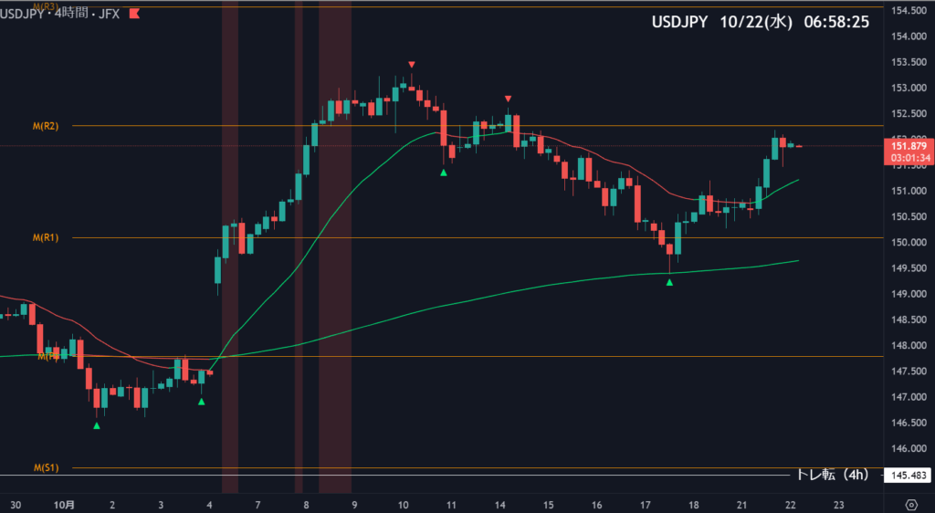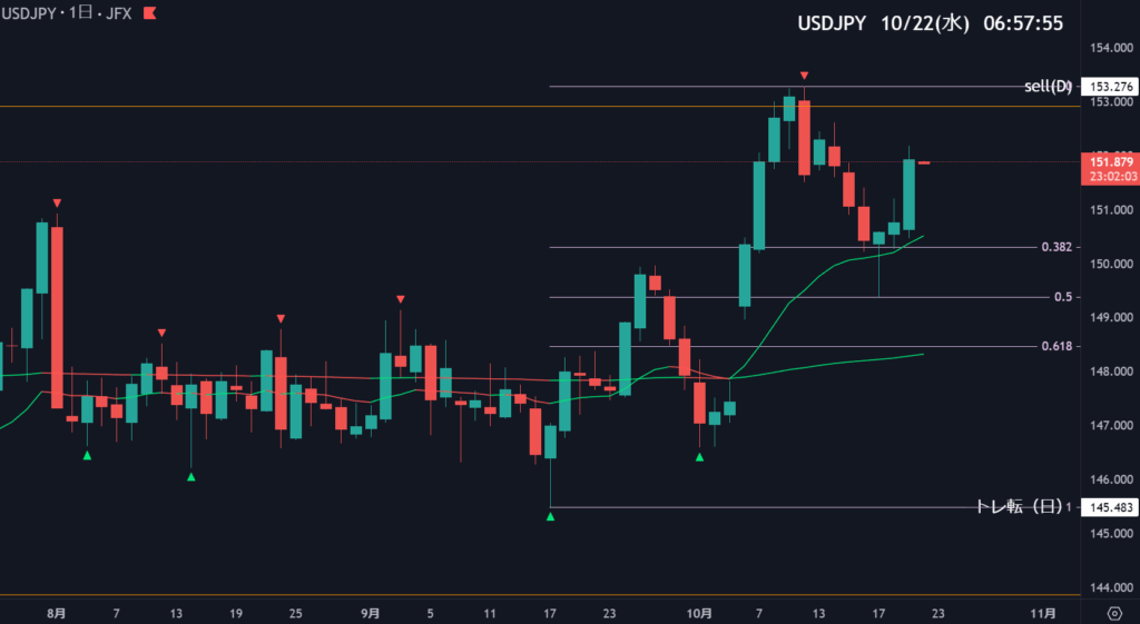 ショートに切り替えるのはレートでいうなら151.00を割れてきてから。