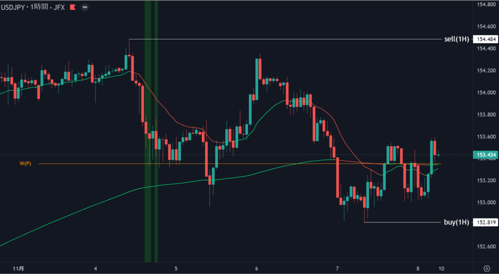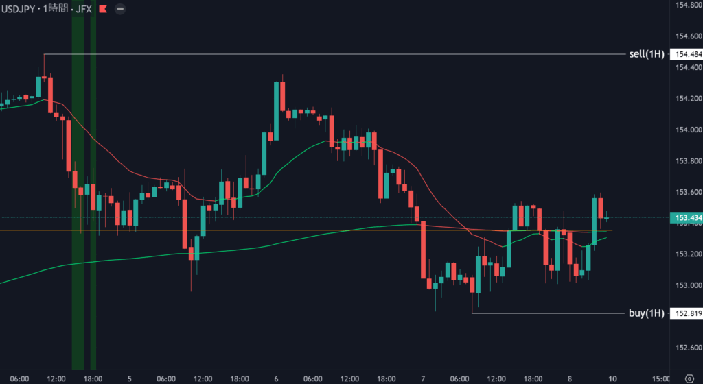 | 154.50 | 高値ブレイク | 1時間足抵抗帯 | 5 |