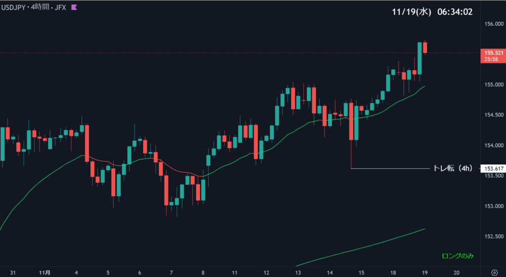 4時間足も同様に155円を割れない限りはロング目線継続していきましょう!