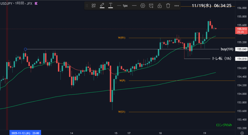 | 155.00 | 押し目買い | 1時間足支持帯 | 4 |