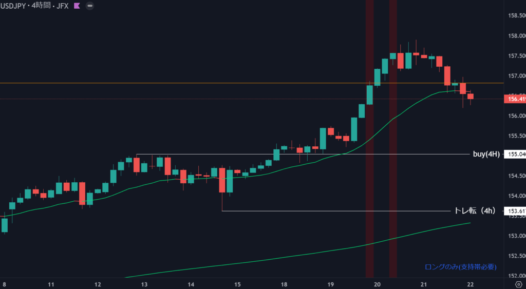 | 155.000 | 押し目買いゾーン | 4時間足支持帯 | 5 |