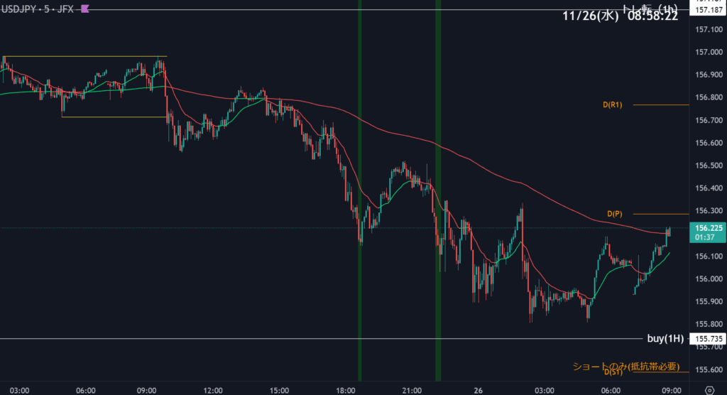 155.735を割れて1分足200EMAを割れない限りはショート方向に狙っていきましょう。