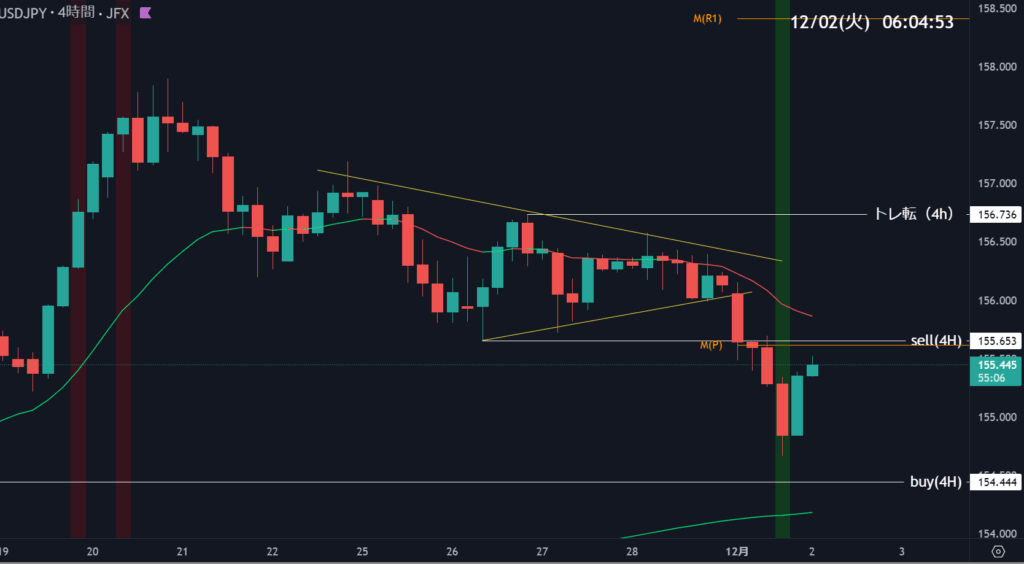 | 156.736 | 目線変更 | 4時間足トレンド転換 | 5 |