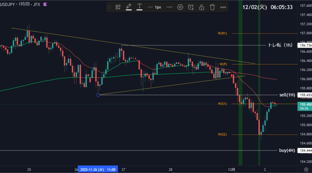 | 156.736 | 目線変更 | 1時間足トレンド転換 | 5 |