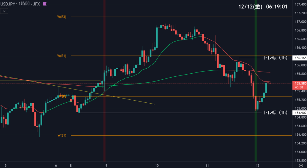 そのなかでも注目は1時間足の156.163を抜けるか、154.902を割れるかです。