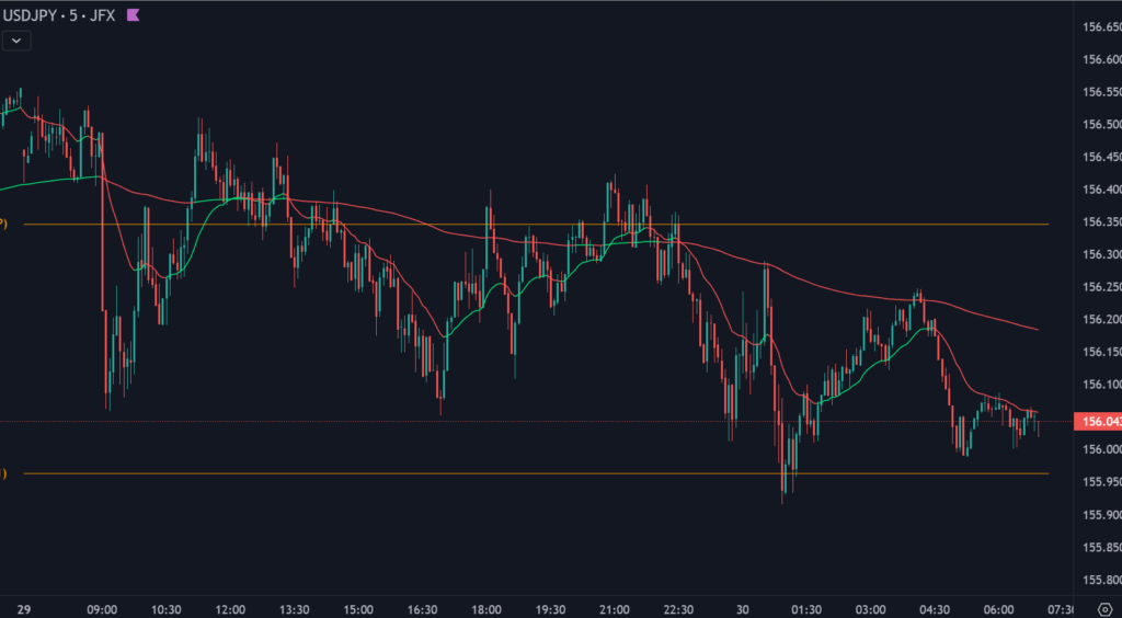 昨日の朝のように東京マーケットオープンして数分で40pips下げるような値動きも起こります。