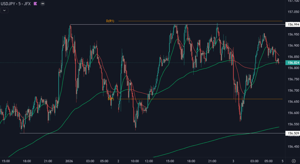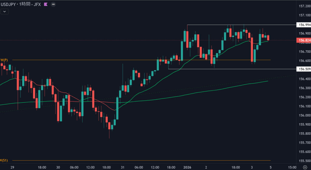 本日の狙い目のレートは157.000と156.500のレンジ