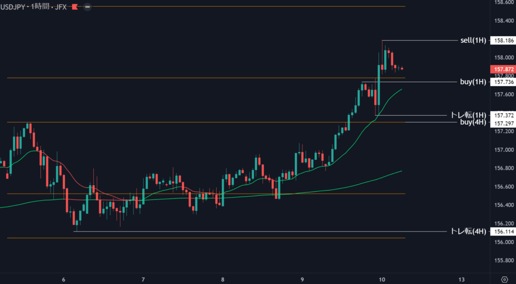 | 157.372 | 目線変更 | 1時間足トレンド転換 | 5 |