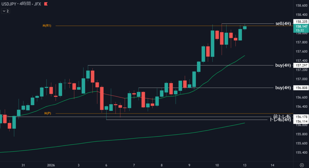 | 158.205 | 高値更新 | 4時間足抵抗帯 | 5 |