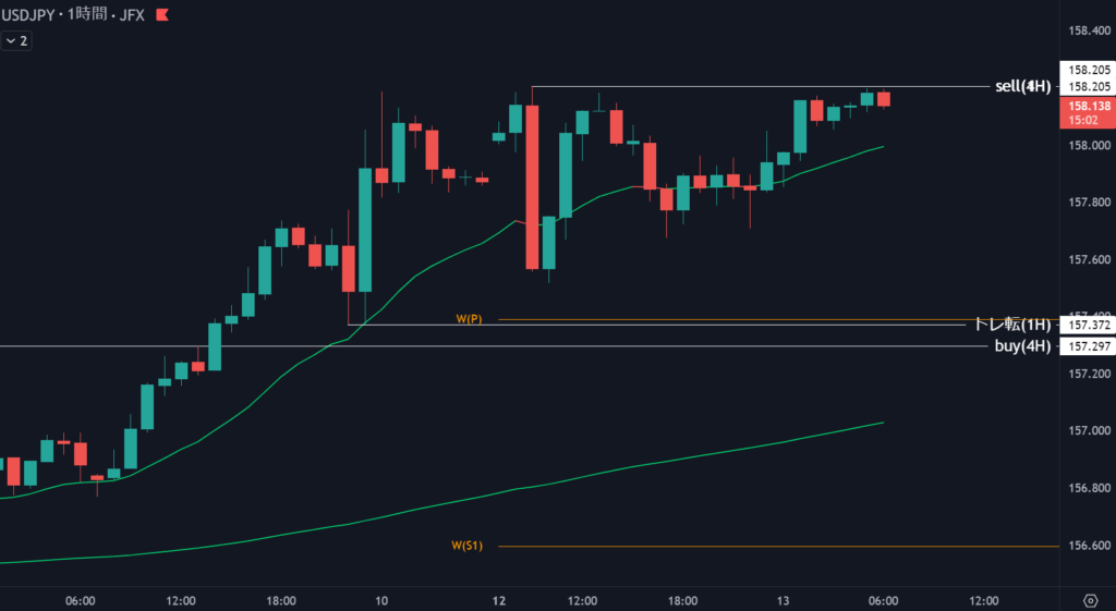 | 157.372 | 目線変更 | 1時間足トレンド転換 | 5 |