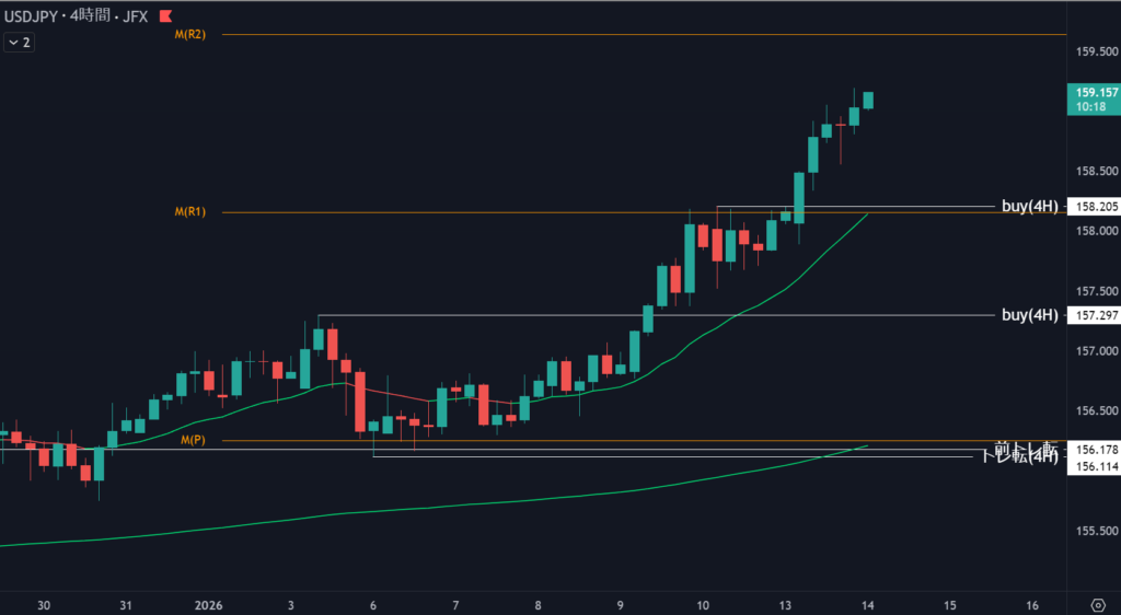 | 158.205 | 押し目買い | 4時間足支持帯 | 5 |