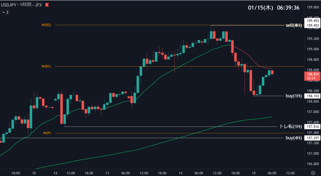 | 158.103 | 押し目買い | 1時間足支持帯 | 4 |