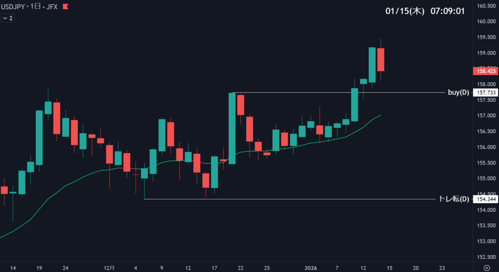 | 157.733 | 押し目買い | 日足支持帯 | 5 |