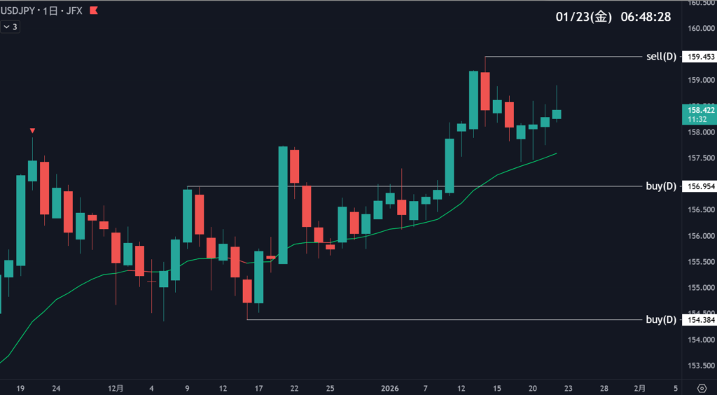 | 159.453 | 高値更新 | 日足抵抗帯 | 5 |