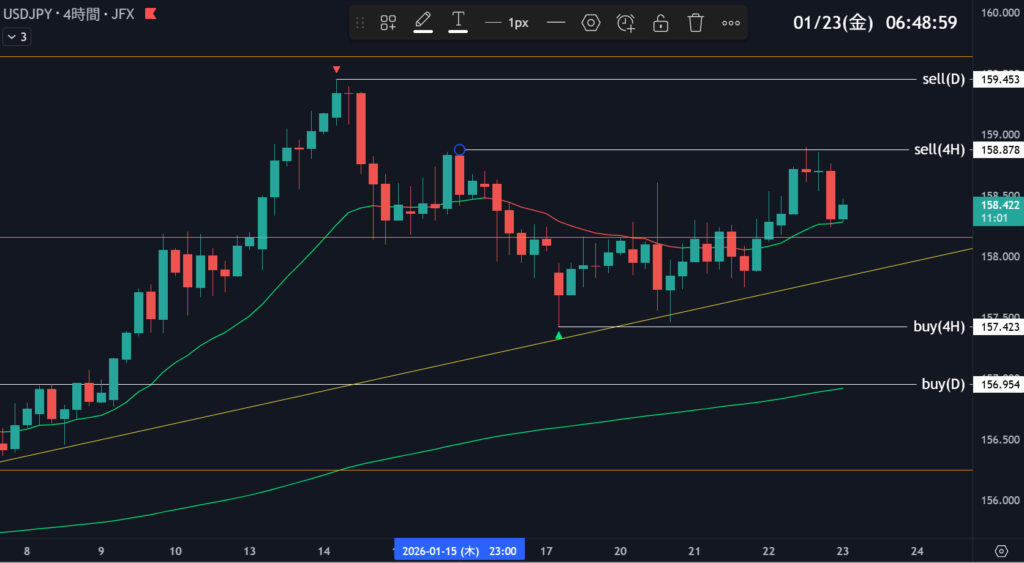 | 158.878 | 目線変更 | 4時間足トレンド転換 | 5 |
