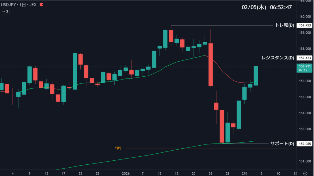 157.423反発エントリー日足抵抗帯5
