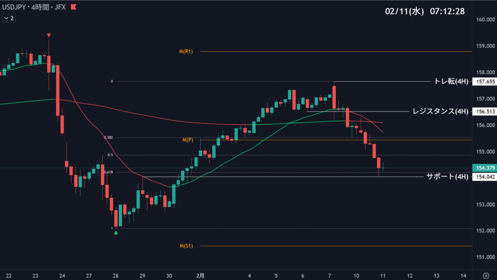 | 154.042 | 反発エントリー | 4時間足支持帯 | 5 |