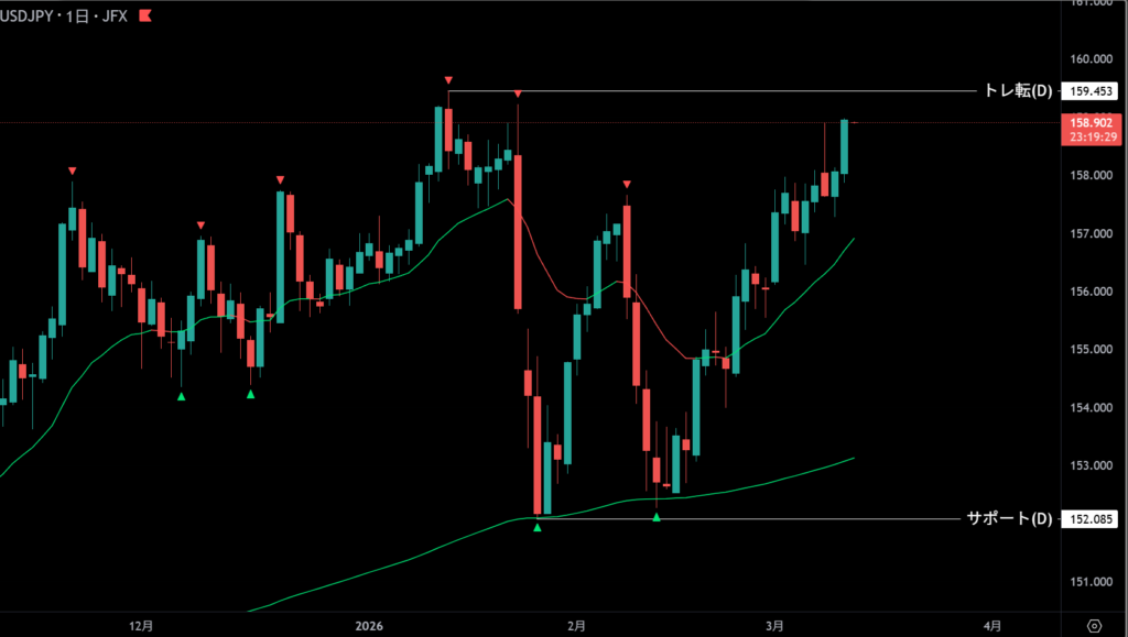 | 159.453・152.085 | 目線変更 | 日足トレンド転換 |
