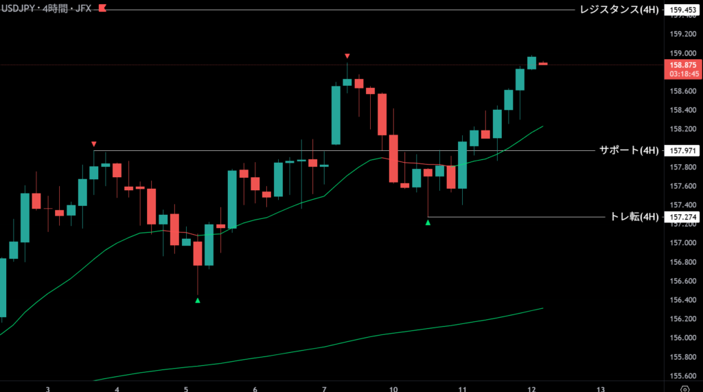 | 157.274 | 反発エントリー | 4時間足支持帯 |