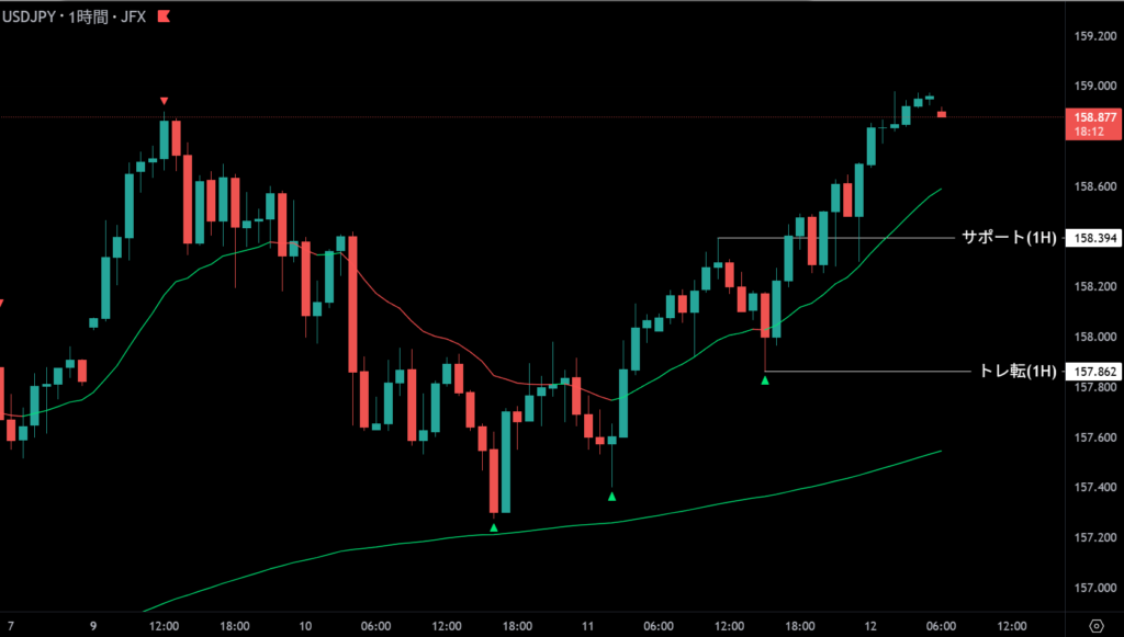 | 157.979 | 反発エントリー | 1時間足支持帯 |