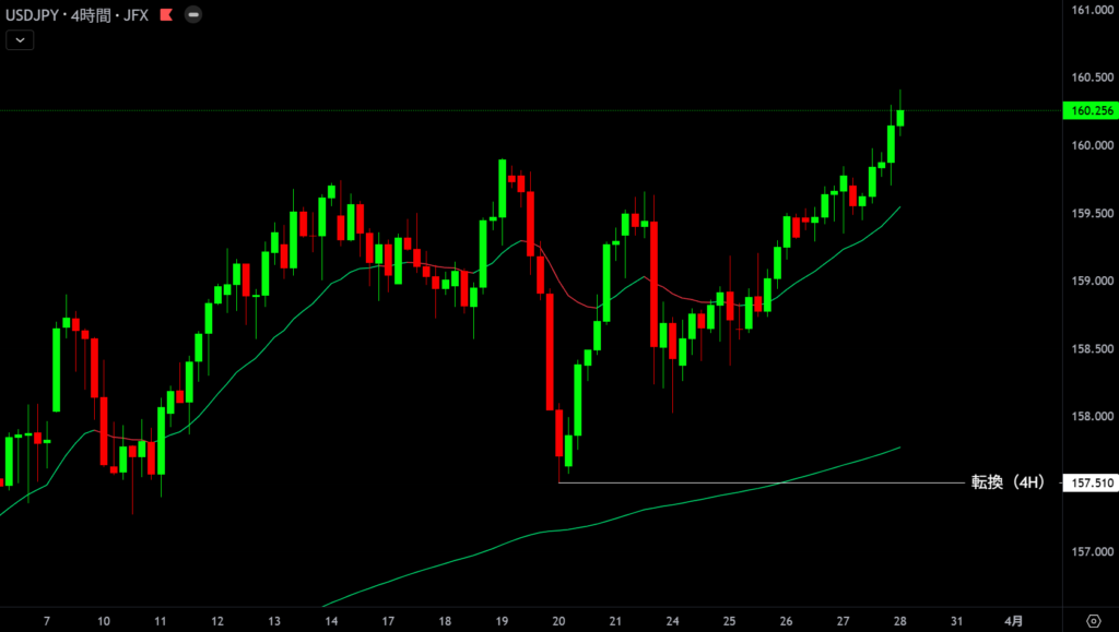 | 157.510 | 目線変更 | 4時間足トレンド転換 |