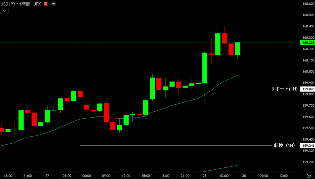 | 159.977 | 反発エントリー | 1時間足支持帯 |
