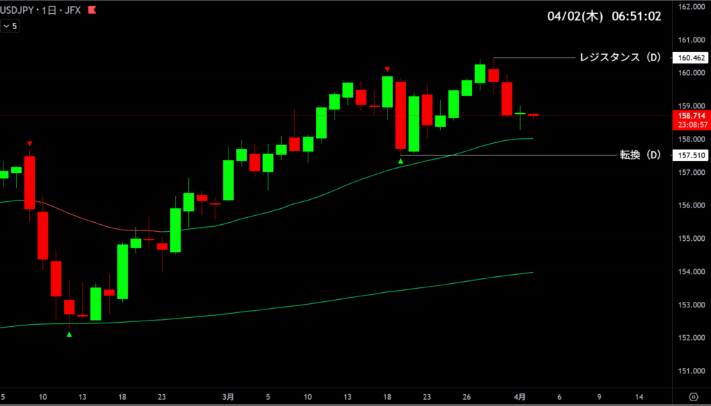 | 157.510 | 目線変更 | 日足トレンド転換 |