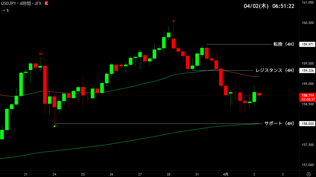 | 158.020 | 反発エントリー | 4時間足支持帯 |
