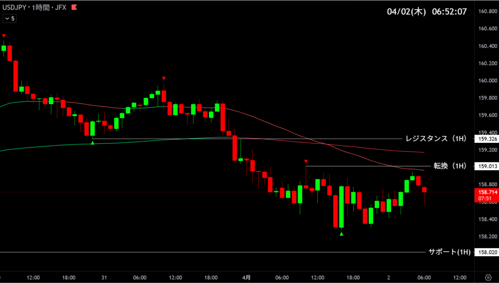 | 159.013 | 反発エントリー | 1時間足抵抗帯 |