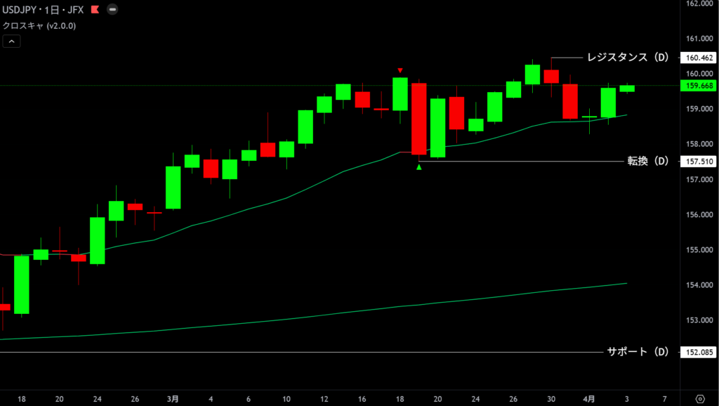 | 157.510 | 目線変更 | 日足トレンド転換 |