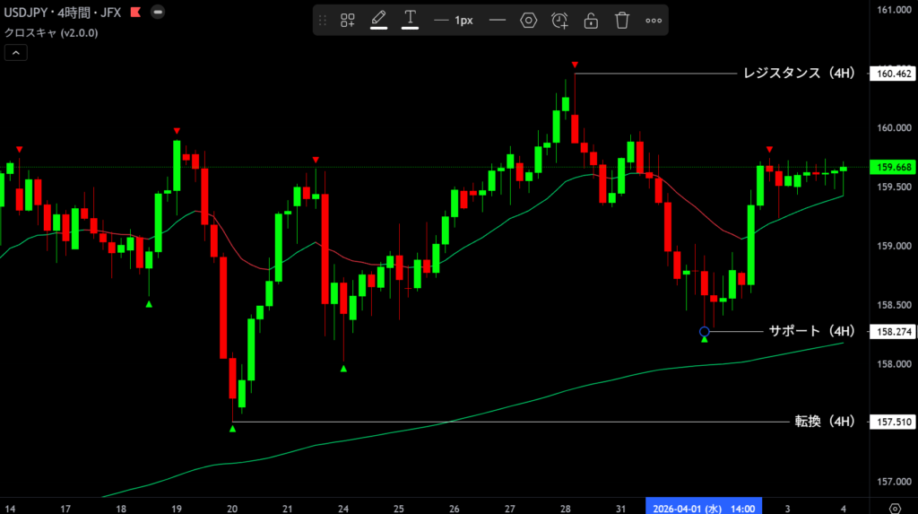 | 158.274 | 反発エントリー | 4時間足支持帯 |