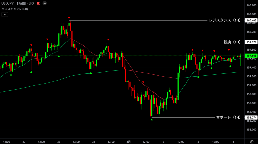 | 159.971・158.274 | 目線変更 | 1時間足トレンド転換 |