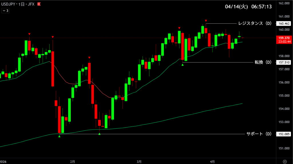 ドル円は159.500付近を一つの目安にして、ここを上抜ければ基本は買い目線。
