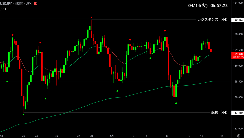 | 160.462・157.510 | 目線変更 | 4時間足トレンド転換 |