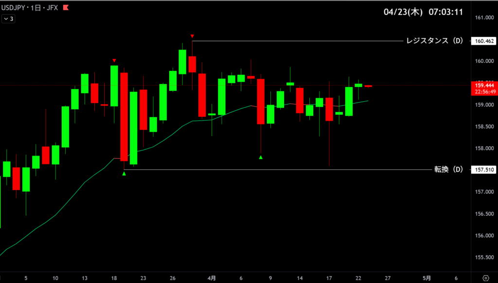 | 160.462・157.510 | 目線変更 | 日足トレンド転換 |