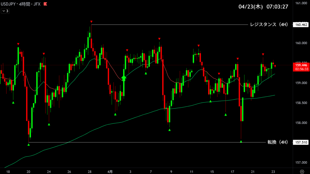 | 160.462・157.510 | 目線変更 | 4時間足トレンド転換 |