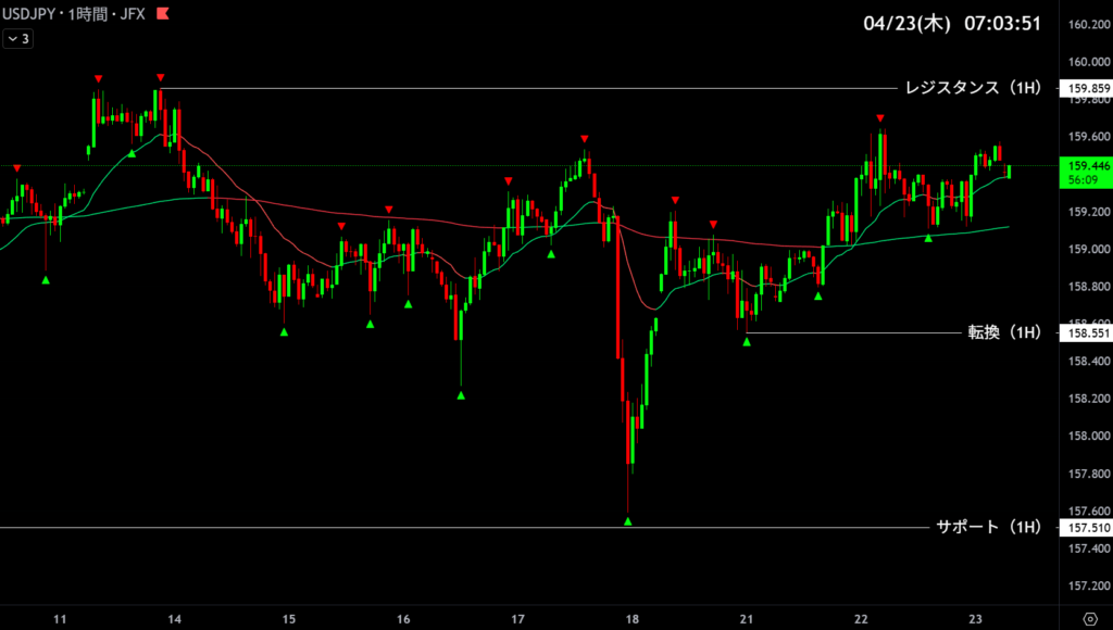| 158.551 | 目線変更 | 1時間足トレンド転換 |