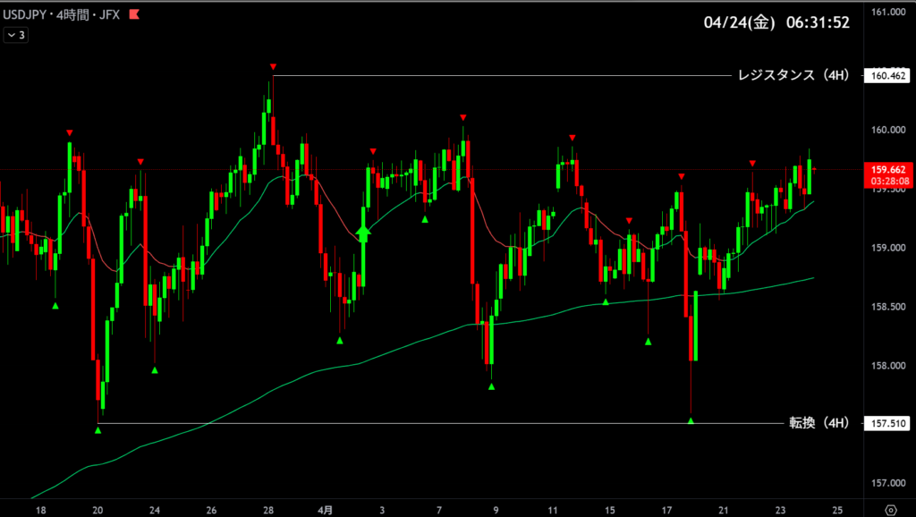 | 160.462・157.510 | 目線変更 | 4時間足トレンド転換 |