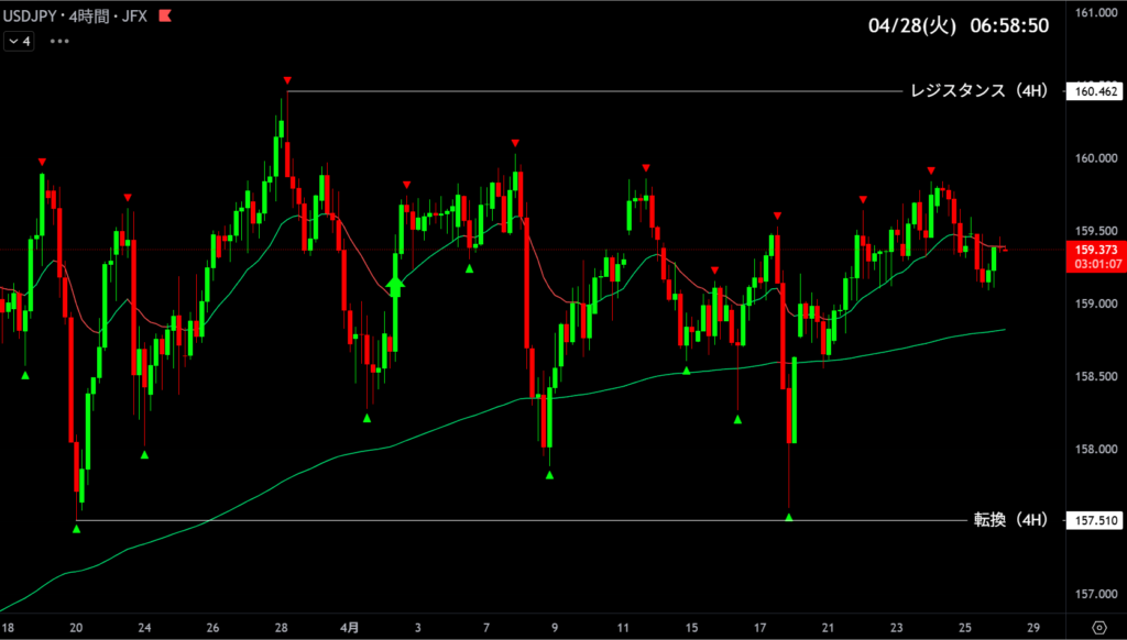 | 160.462・157.510 | 目線変更 | 4時間足トレンド転換 |
