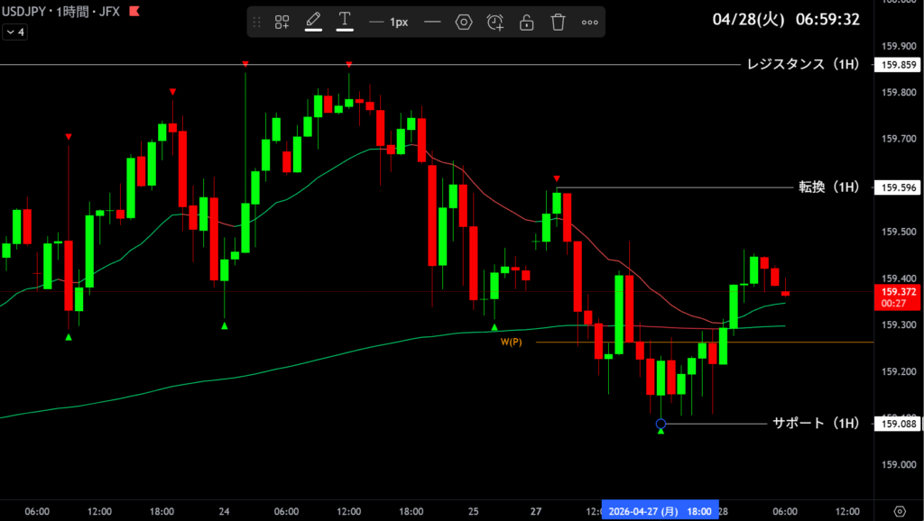 | 159.088 | 反発エントリー | 1時間足支持帯 |