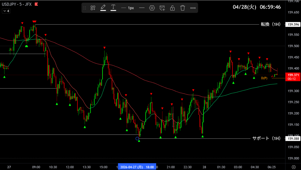 | 159.596 | 目線変更 | 1時間足トレンド転換 |