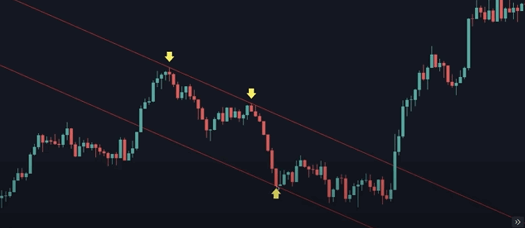 フラッグを成立させるには、チャネルラインの正確な引き方が欠かせません。曖昧なライン取りをしてしまうと、せっかくのパターンも根拠が薄れてしまいます。ポイントは「最低でも上2点・下2点の反応を確認する」ことです。